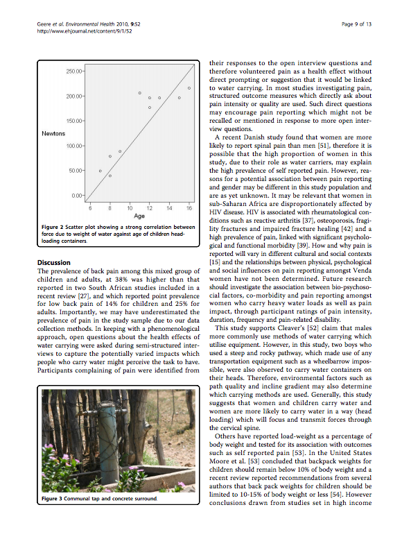 - The approach was used to to evaluate the relationship between physical pain and potential risk factors observed to occur during water carrying.